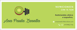 Sou Ana Paula Zanella, Nutricionista, especialista em Nutrição Clínica e Esportiva. Atuo na profissão há 7 anos. Minha missão é poder transformar a vida das pessoas através da alimentação, melhorando sua relação com a comida, sem restrições e sofrimento, através de uma Reeducação Alimentar inteligente.